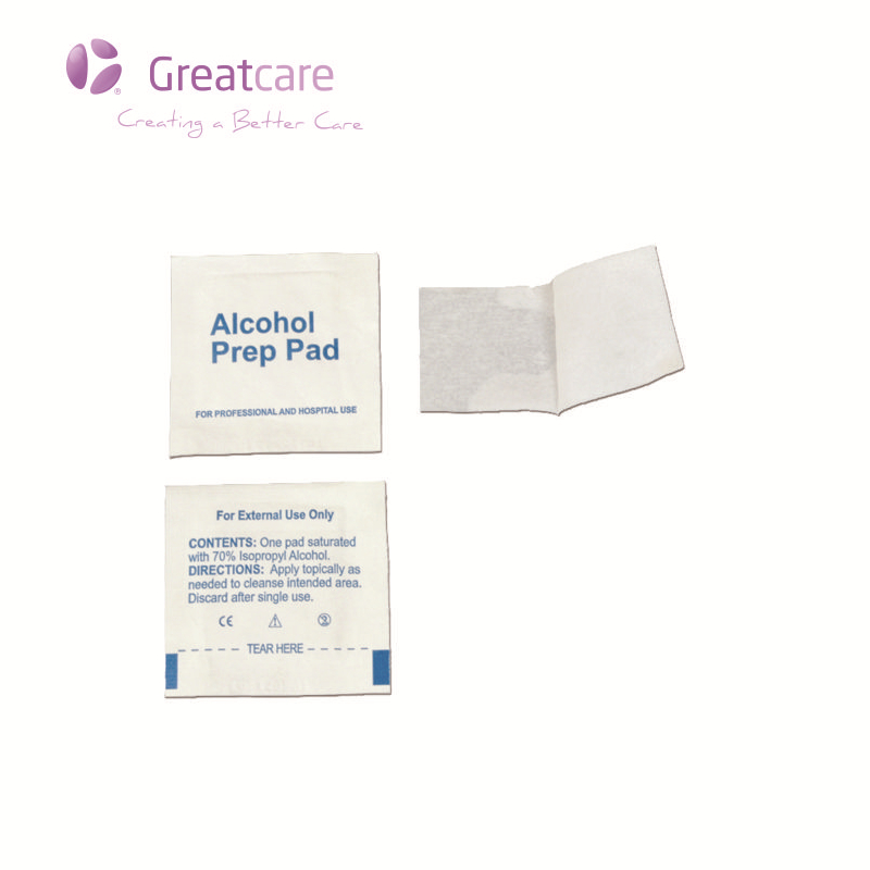 Greatcare Alkoholtupfer mit CE und ISO13485. Alkoholtupfer werden zur Hautbehandlung vor und nach der Injektion verwendet.