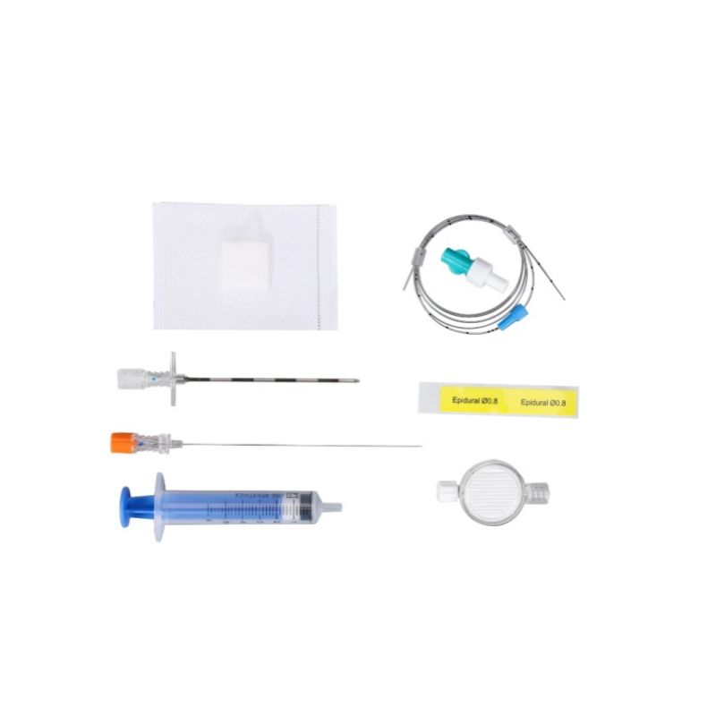 Das Kit für die Epiduralanästhesie besteht aus einer Epiduralnadel, einer Spinalnadel, einem Epiduralkatheter (allgemeiner Typ oder verstärkter Typ), einem Katheteranschluss, einer Einführhilfe, einem Flüssigkeitsfilter und einer Spritze mit geringem Widerstand. Es wird zur Spinal- und Epiduralpunktion sowie zur Injektion flüssiger Medikamente in den Epiduralraum und den Subarachnoidalraum während der Epiduralanästhesie und Spinalanästhesie eingesetzt.