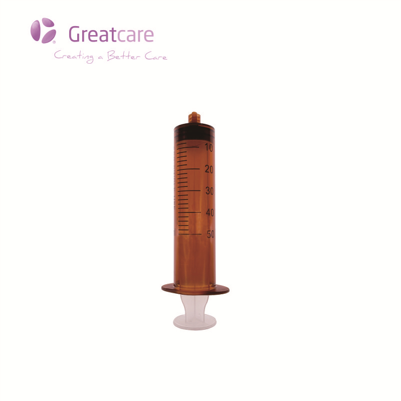 Die undurchsichtige Spritze stoppt 90 % der Lichtstrahlen zwischen 290 und 450 nm UV-Wellenlänge und sorgt so für einen garantierten Schutz lichtempfindlicher Medikamente. Undurchsichtige Spritze von Greatcare mit CE und ISO13485.